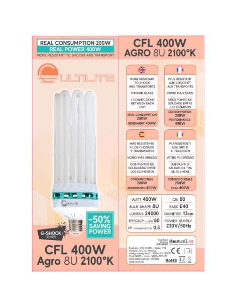 CULTILITE - G-SHOCK 400W AGRO - LAMPADA CFL A BASSO CONSUMO - 2100°K