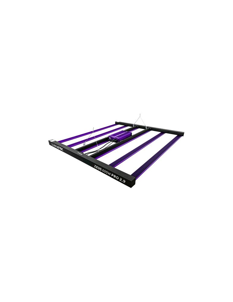 La specifica più elevata Lumatek Zeus Pro 2.9 è un apparecchio lineare multi-light bar che produce livelli molto elevati di PPF di 1770 µmol/s e un'efficienza molto elevata fino a 2,9 µmol/J.