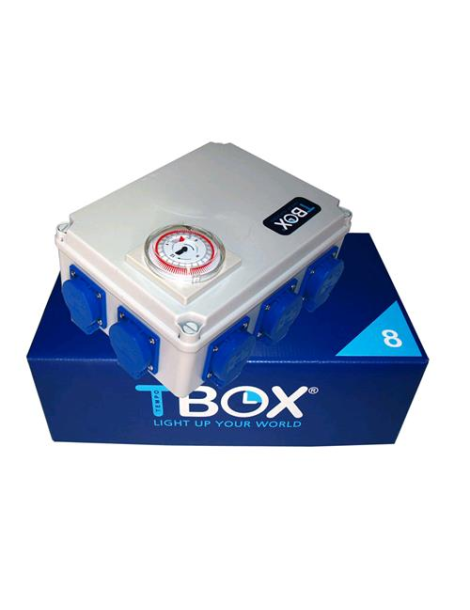 TBOX 8 è il quadro elettrico temporizzato in grado di controllare fino a 8x630w, 8x600w, 12x400w or 16x315w accesories.