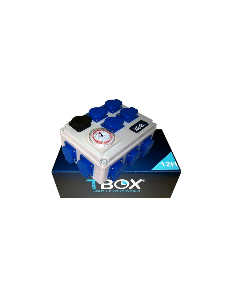 TBOX 12H è il quadro elettrico temporizzato in grado di controllare fino a 12x630w, 12x600w, 16x400w o 20x315w accessori.